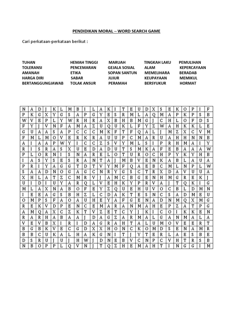 Cari Perkataan Tersembunyi Pendidikan Moral Ocspaab